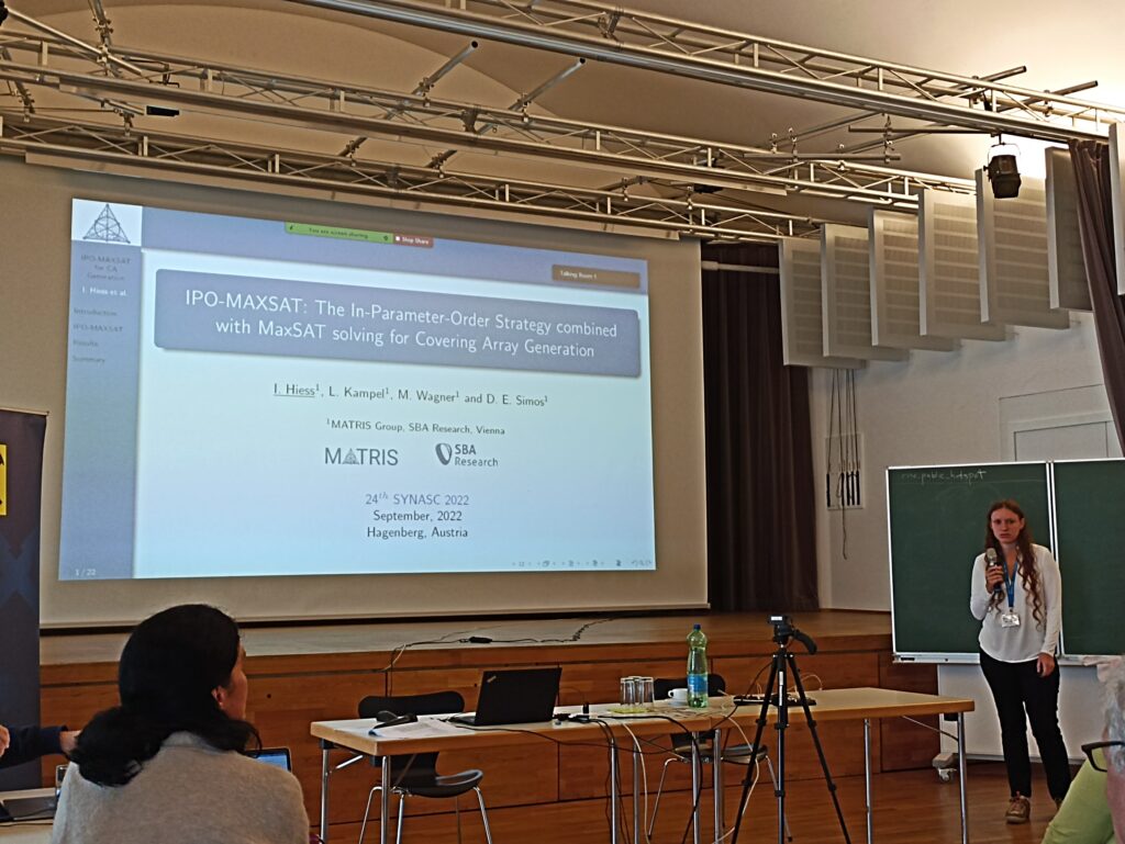In the logic and programming session, researcher of MATRIS Research Group, Irene Hiess, gave a talk with the title of IPO-MAXSAT: The In-Parameter-Order Strategy combined with MaxSAT solving for Covering Array Generation, presenting joint work with Ludwig Kampel, Michael Wagner, and Dimitris E. Simos, who joined the conference also.