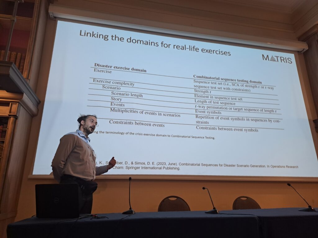 Yesterday, Dimitris Simos gave a plenary talk on “Disaster scenarios with discrete sequences: Using combinatorics for enhanced disaster preparedness” at the 6th International Conference on Dynamics of Disasters (DoD 2023). Klaus Kieseberg and Bernhard Garn from the DEFSYS team also participated in the talk, showcasing the research activities of MATRIS together with external collaborators on the generation of disaster scenarios as well as demonstrating their instantiation for both disaster simulations and disaster management exercises. Disaster preparation for both man-made and non-man-made disasters is crucial in order to achieve resilience and such preparation can be carried out in multiple forms, such as exercises, scenario analysis, and simulation.