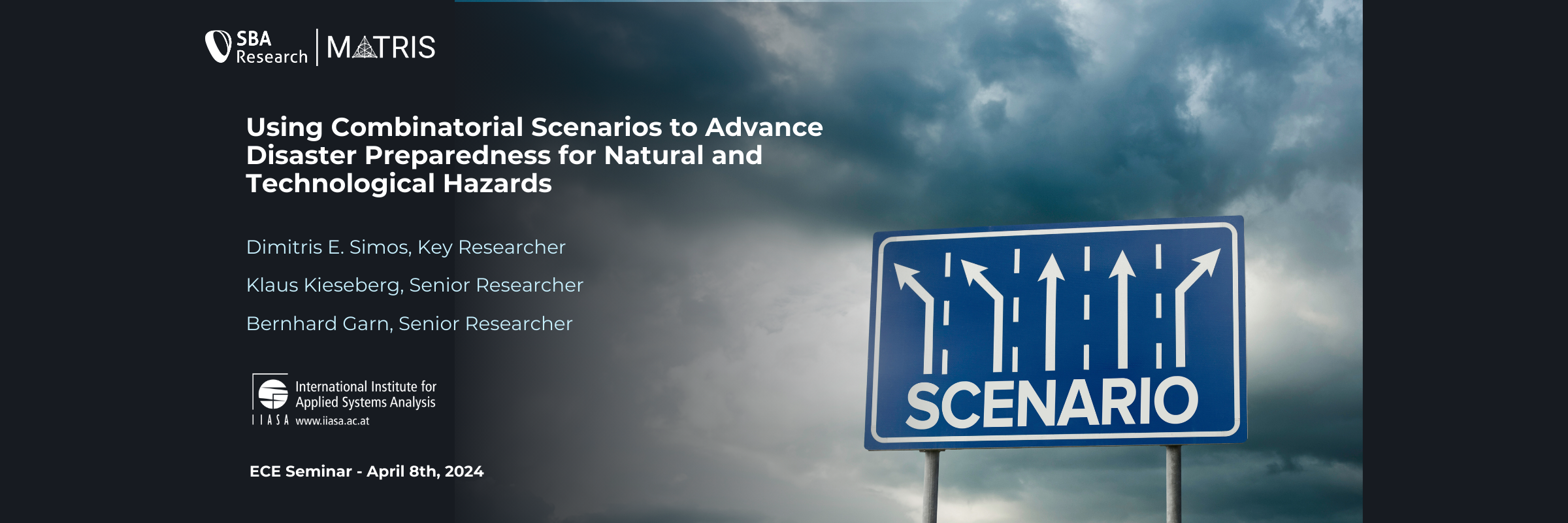 On April 8, 2024, the MATRIS Research Group and the Energy, Climate, and Environment (ECE) research program members of IIASA convened for the ECE Seminar at the headquarters of IIASA at Schloss Laxenburg, while approximately 25 members from both parties participated remotely. Throughout the seminar, Dimitris Simos, the head of the MATRIS research group, led a presentation with the support of co-presenters Klaus Kieseberg and Bernhard Garn.