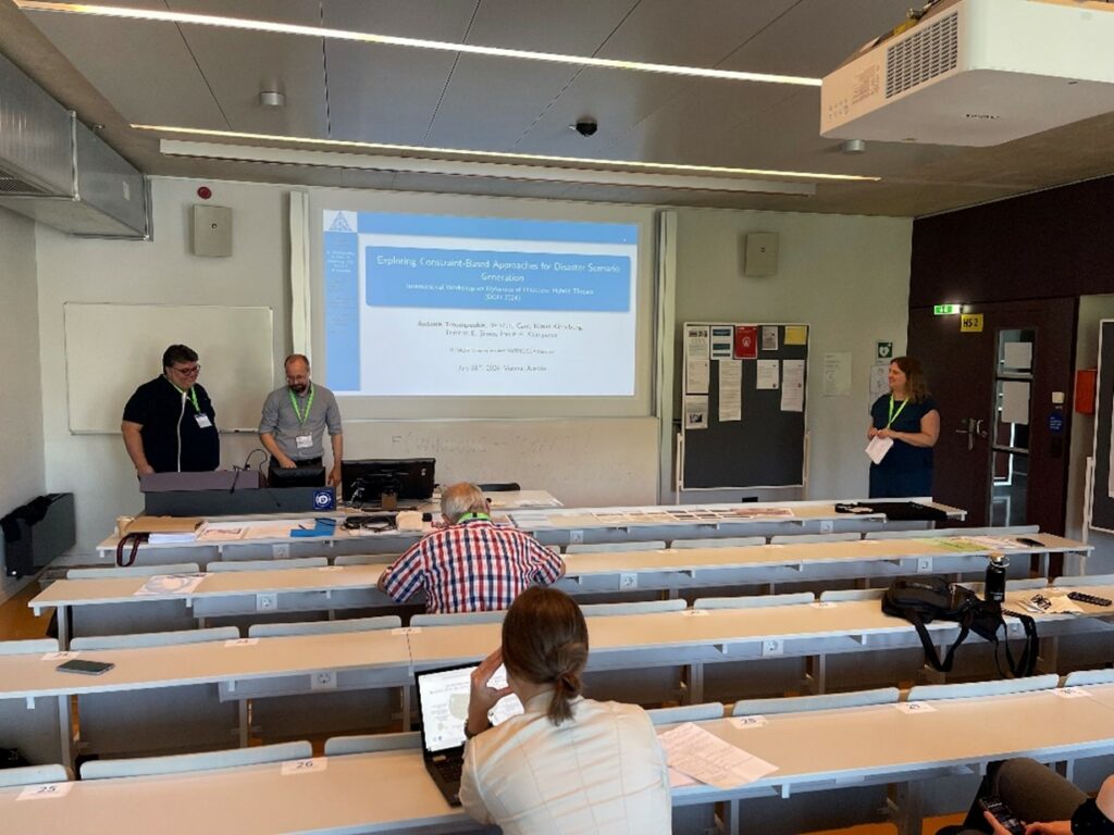 The afternoon session featured a presentation by Rifqi Irvansyah, who examined the status of school buildings in Banda Aceh City 19 years after the devastating tsunami. His talk, titled ‘Feasibility of School Buildings in Banda Aceh City 19 Years After the Tsunami’, offered a insightful reflection on long-term recovery and resilience. This was followed by a collaborative presentation from Antonis Troumpoukis and Klaus Kieseberg on ‘Exploring Constraint-Based Approaches for Disaster Scenario Generation’. The day concluded with a remote presentation by Helene Jacot Des Combes, who discussed updates to the UNDRR/ISC Hazard Information Profiles in her talk, ‘The UNDRR/ISC Hazard Information Profiles – Standardized Hazard Definition and Information to Support Hazard Understanding and Data Analytics’.