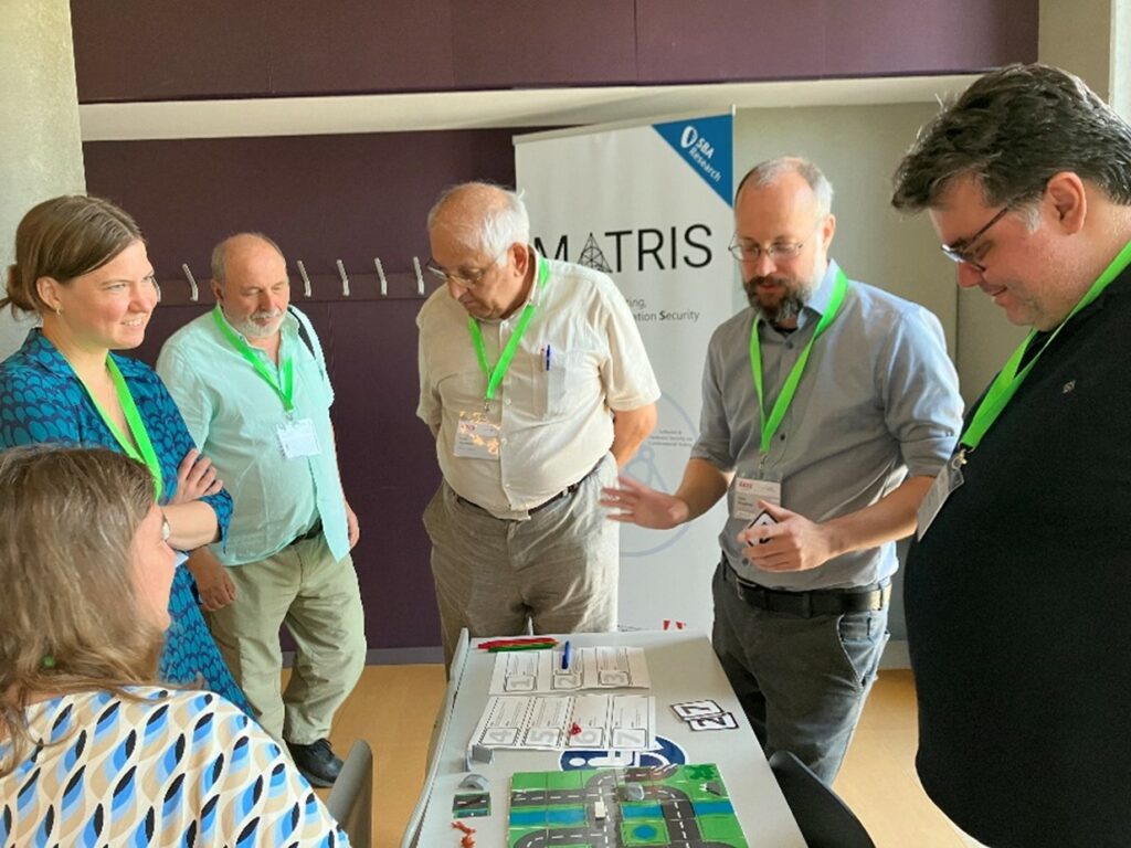 Next, Ana Rocha delivered a remote presentation on an optimization approach for scheduling firefighting vehicles. Her talk, ‘An Optimization-Simulation Approach to Scheduling Firefighting Vehicles’, presented collaborative research that highlighted innovative strategies for improving emergency response. Following this, the MATRIS Research Group introduced the ‘MATRIS Disaster Games’, an interactive session where participants engaged in games designed to simulate the temporal effects of disaster events and the dangers posed by cyber threats. Moderated by Klaus Kieseberg and Bernhard Garn, this session provided a unique, hands-on learning experience.