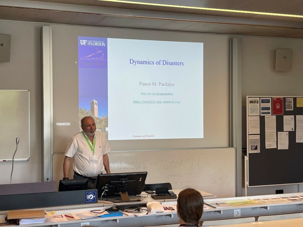 The second day of the workshop opened with a compelling plenary talk by Professor Panos Pardalos, whose presentation on the ‘Dynamics of Disasters’ covered a broad spectrum of topics related to disaster management. His exploration of emerging threats and critical trends captivated the audience, sparking a lively Q&A session that underscored the importance of these discussions.